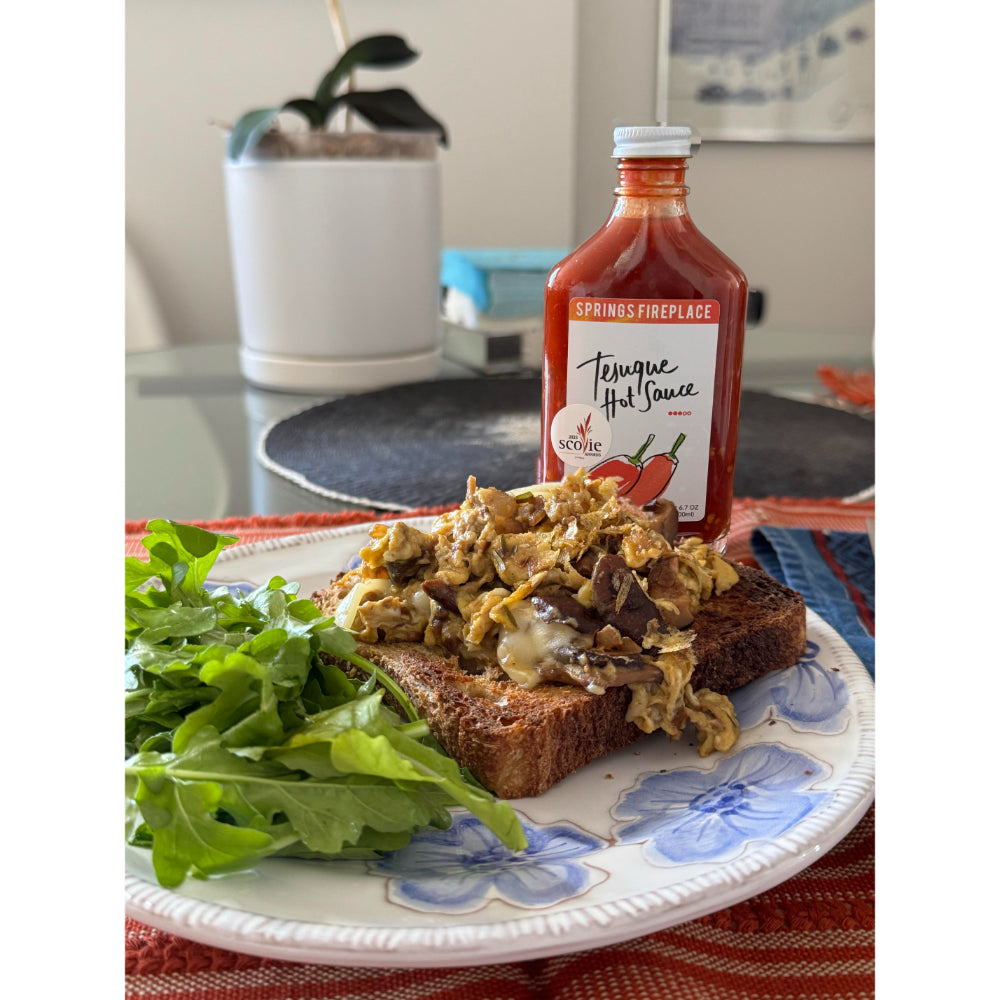 Bright, tangy, and endlessly versatile, our best-selling Tesuque (pronounced Teh-SOO-kay) hot sauce is your new everyday condiment. Made from a rare heritage chile first cultivated over 300 years ago by the Tesuque Pueblo outside Santa Fe, NM, it brings a clean, balanced flavor and a medium heat that builds slowly with every bite.