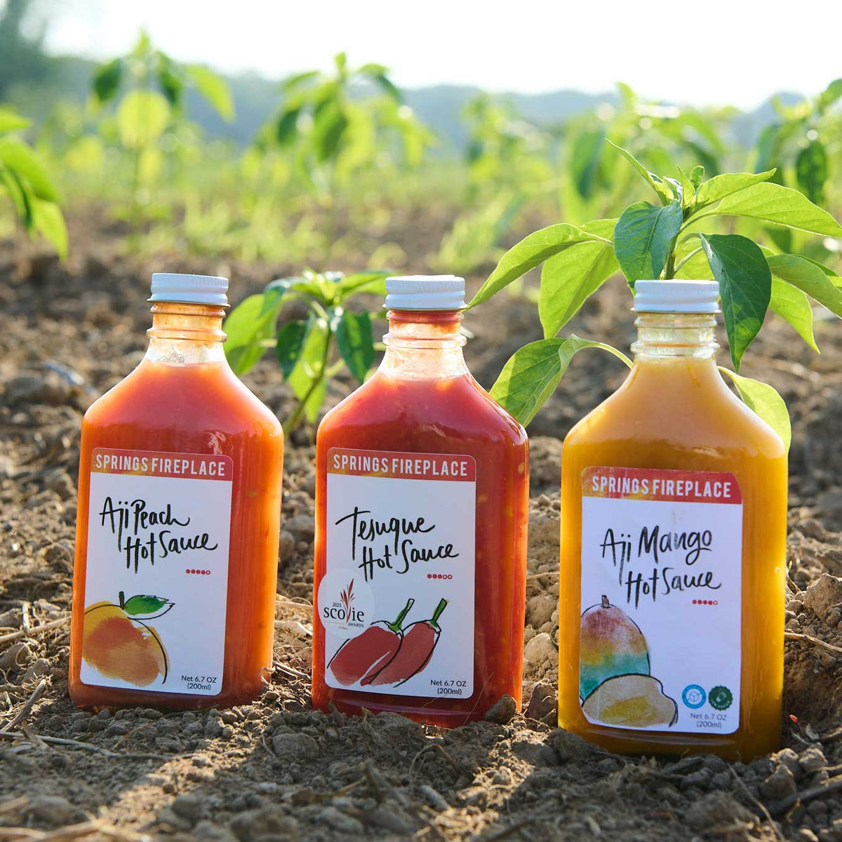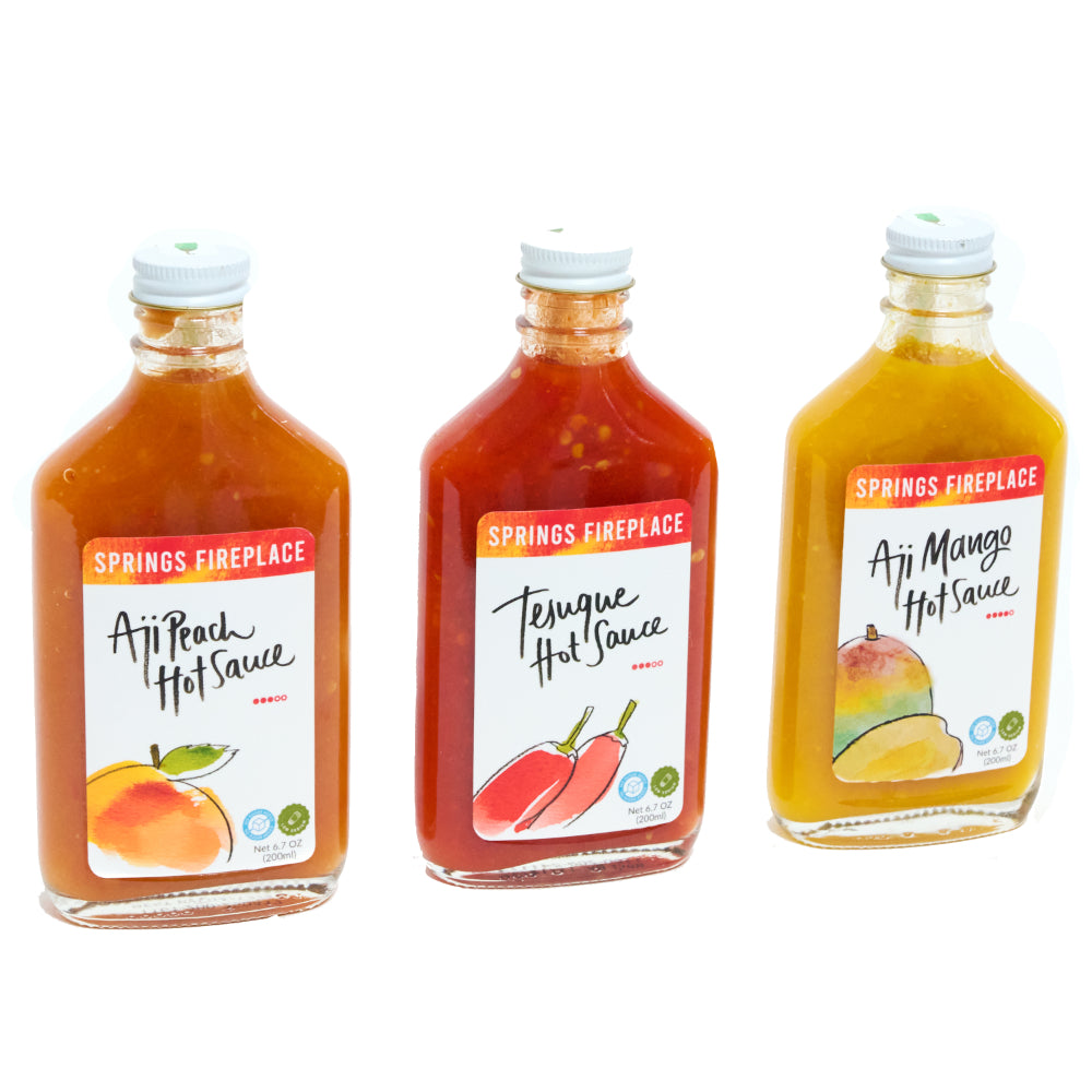 The perfect gift for food lovers, heat connoisseurs, or anyone who appreciates things that come straight from the farm. This beautifully boxed trio features one full-sized bottle of each of our award-winning hot sauces — Tesuque, Aji Peach, and Aji Mango.